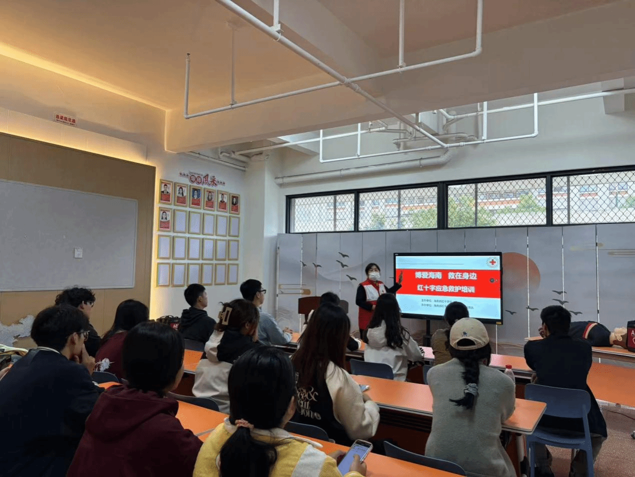 为深入开展应急救护知识普及、救护技能培训、救护服务阵地建设等工作,进一步提高校园应急救护能力,助力平安校园建设,2025年3月30日,乘风书院联合全球杰出青年海口社区、海口观澜湖社区卫生服务站共同主办“椰城生命守护者,急救知识进校园”应急救护培训(第一期)。